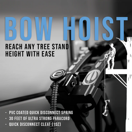 The Elite RAC Bow Hoist is your go-to solution for elevating your gear effortlessly and securely when hunting from a tree stand. Designed for quick and easy setup, it features a RAC attachable PVC-coated quick disconnect spring for reliable performance in the field. The included quick disconnect cleat allows for a seamless attachment to your bow, making it easy to prepare your setup. With 30 feet of high-strength paracord, you’ll have plenty of reach for any hunting situation, making this hoist a dependable choice for seasoned hunters.