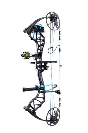 Includes IMS® V-Biscuit rest, Picatinny-mounted Fatal 4 sight, 5 Spot arrow quiver, Snubnose stabilizer, Radical peep sight, and wrist sling