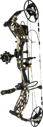 Includes SWFT Duo Sight with Picatinny mount, Whisker Biscuit V Rest with Integrate Mounting System®, Hitman Stabilizer with Quick Disconnect, VRSA Light Quiver, peep sight, and wrist sling