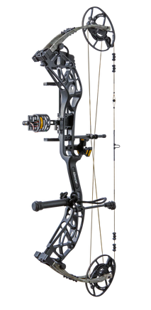 IMS® V-Biscuit rest, a Picatinny-mounted Fatal 4 pin sight, a 5 arrow quiver, a stabilizer, Radical peep sight, and wrist sling