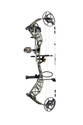IMS® V-Biscuit rest, a Picatinny-mounted Fatal 4 pin sight, a 5 arrow quiver, a stabilizer, Radical peep sight, and wrist sling