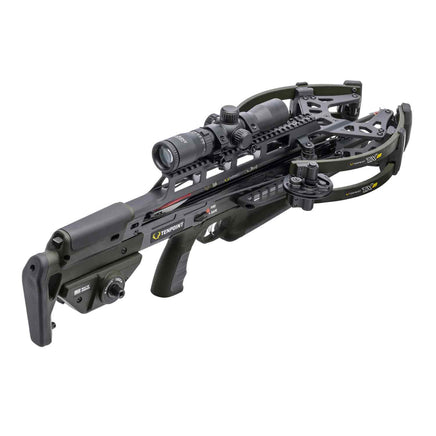 Leveraging all the advantages of Twin-Riser Technology that reduces riser flex for greater down-range accuracy, the TX 28 delivers a smooth, quiet shot at 410 FPS. Ultra-compact at 28” short and 6.5” narrow, the TX 410 features a custom TriggerTech Trigger, a ZERO-Trac Barrel, GUIDE-Lock Arrow Rest System™ that create the most secure, consistent launch platform ever built for a crossbow. The ACU-Lock Scope Bridge™ provides the ultimate foundation for scope stability and accuracy and the ACUSlide MAXX™ provides silent and safe de-cocking.