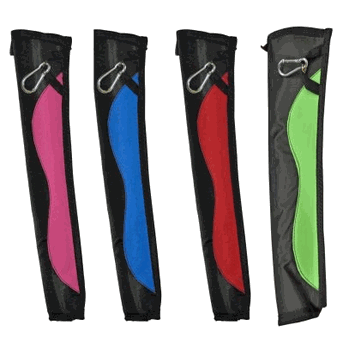 Ambidextrous tube quiver with soft shell design and reinforced bottom. Includes carabiner attachment. |