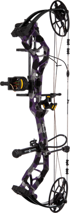 Includes IMS® V-Biscuit rest, Picatinny-mounted Fatal 4 sight, 5 Spot arrow quiver, Snubnose stabilizer, Radical peep sight, and wrist sling